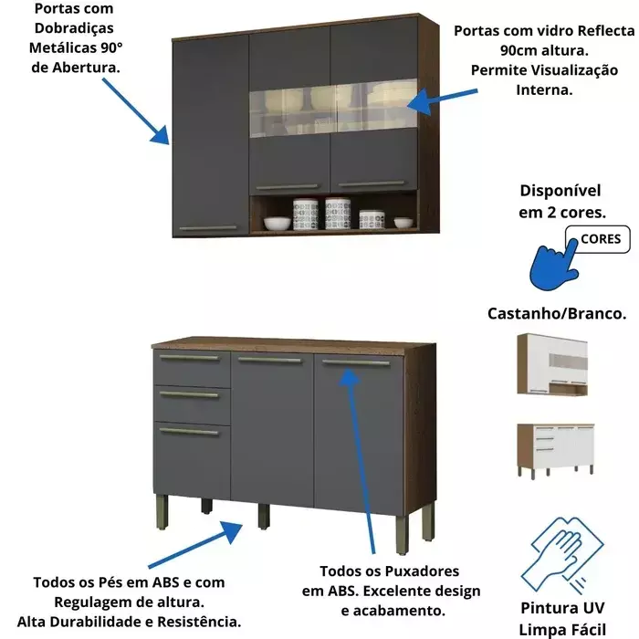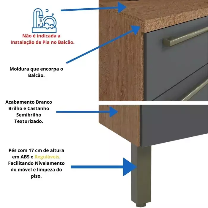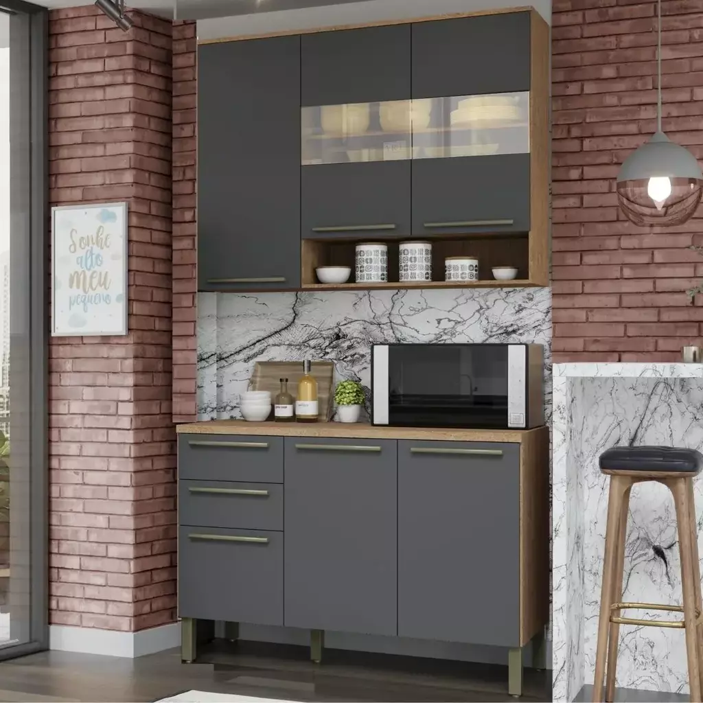 Cozinha Completa Nápoli Prime 2 Peças (1 Armário + 1 Balcão) C2P04 Amendoa/Grafite - Ronipa