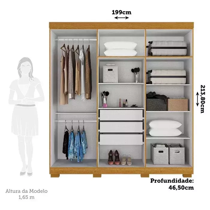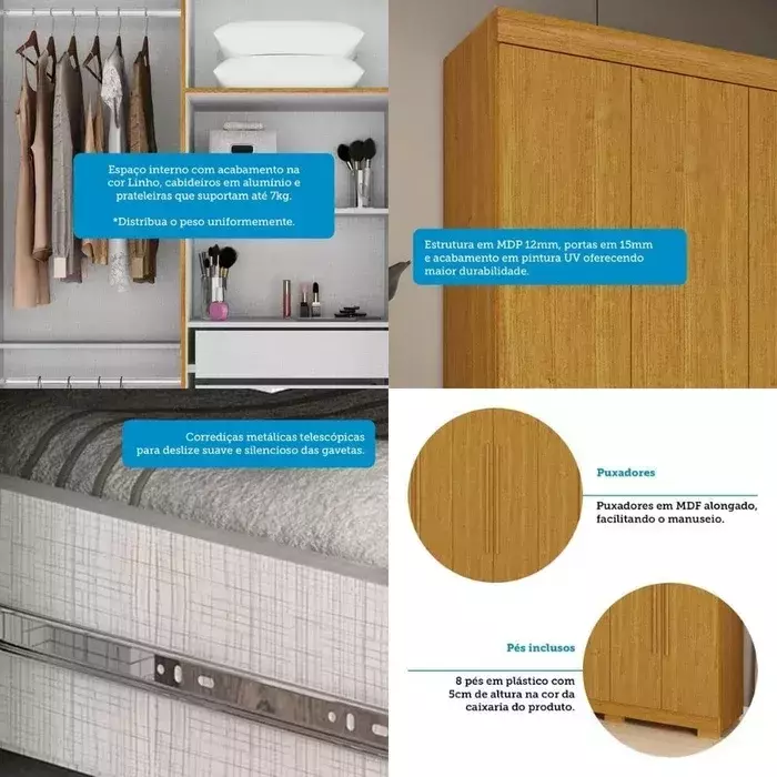 Itens Inclusos: 1 Guarda Roupas, kit ferragens e manual de montagem