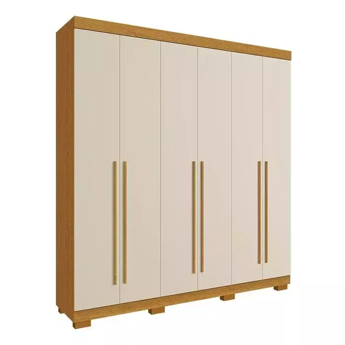 Guarda Roupa Casal 6 Portas Com Espelho Agata Acp Móveis Branco - ACP MOVEIS